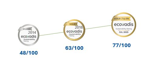 Con un punteggio di 77/100, il nostro Gruppo ha ottenuto lo status Gold per il 2025.