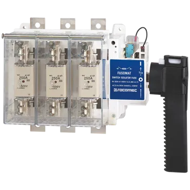 Gli interruttori-sezionatori con fusibili FUSOMAT sono interruttori di manovra-sezionatori a 3 o 4 poli a comando manuale con apertura completamente apparente e funzione di sgancio a distanza.