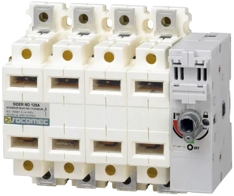 | Descrizione | Interruttore manuale con interruzione visibile SIDER a 3 poli 125A 690VAC-500VDC a comando diretto laterale con maniglia tipo F2 o a comando laterale esterno con maniglia tipo S2. Fornito senza maniglia |