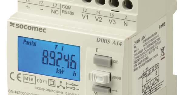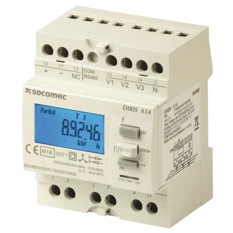 | Descrizione | MID Monitoraggio della potenza DIRIS A-14 MID montato su guida DIN con protocolli di comunicazione Modbus e porte di comunicazione RS485, per la misurazione di valori elettrici in reti a bassa tensione |