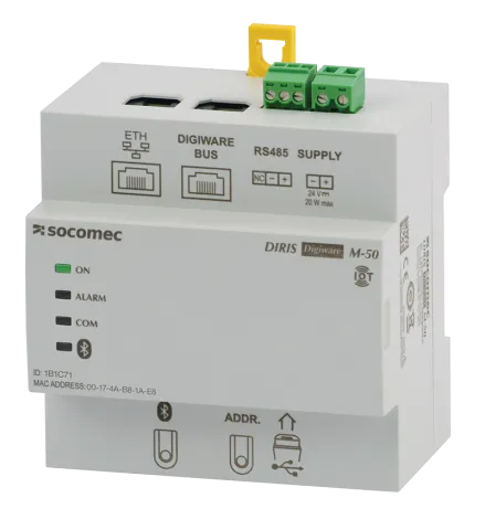 Descrizione Communication gateway interface for DIRIS Digiware system DIRIS Digiware M-50 with Ethernet gateway (with Bluetooth connectivity) and Modbus communication protocols