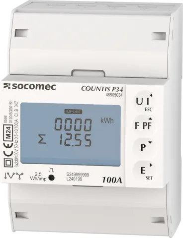 | Descrizione | Contatori di energia attiva modulari COUNTIS P34 certificati MID Trifase - diretta 100A, protocolli elettrici di tipo MODBUS, completamente integrati nell'ecosistema SOCOMEC che comprende: Webview/schermi/gateway/software di configurazione |