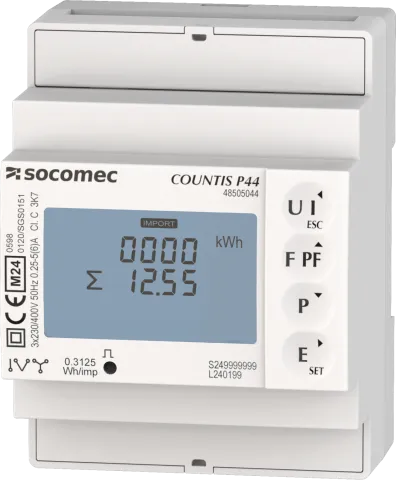 | Descrizione | Contatori di energia attiva modulari COUNTIS P44 certificati MID Trifase su CT 1 e 5A, porte elettriche di tipo M-BUS, completamente integrati nell'ecosistema SOCOMEC che comprende: Webview/schermi/gateway/software di configurazione |