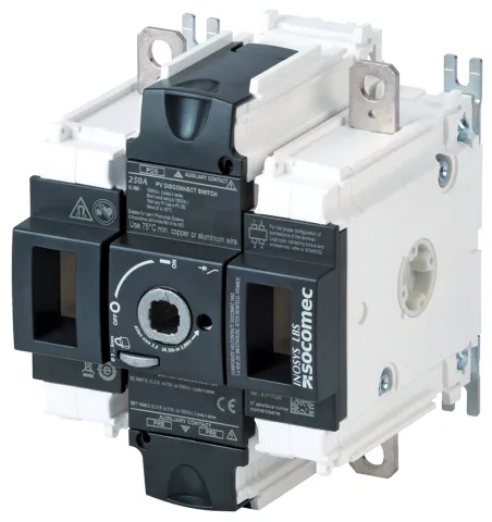 | Descrizione | Sezionatore per DC e fotovoltaico INOSYS con 1+1 poli, 250A, 1500 Tensione DC a comando diretto frontale/laterale con maniglia tipo E2 o a comando esterno frontale/laterale con maniglia tipo S2. Fornito senza maniglia |